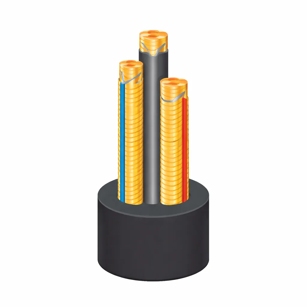 Type 440 is a Class 2, composite screened, three-core trailing cable designed for open cut and surface mining where three pilot/control cores are required instead of a single central pilot. Three EPR-insulated power cores are laid up around a centre filler, with three elastomer-covered pilot conductors disposed into the outer interstices — the same positions occupied by earth conductors in related types. Rated 1.1/1.1 kV through 22/22 kV (U0/U), it is the three-pilot open-cut equivalent of the underground Type 240. The composite Cu-wire screen provides collective earth fault detection. Per AS/NZS 2802:2000, it is designated Class 2.......Read More