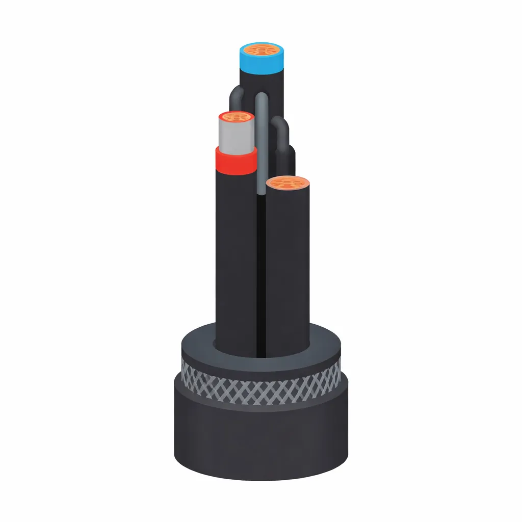 Type 409 is a Class 2, composite screened, three-core trailing cable designed for open cut and surface mining applications. It incorporates a central pilot core surrounded by three EPR-insulated power cores, three interstitial earth conductors, and a collective composite copper-wire screen, all enclosed in a heavy-duty PCP or CSP/CPE outer sheath.Rated 1.1/1.1 kV through 22/22 kV (U0/U), it is the open-cut surface equivalent of the underground Type 209, sharing the same constructional numbering convention per AS/NZS 2802:2000.......Read More