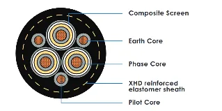 centre filler, three individually composite-screened XR-EP-90 insulated power cores, two