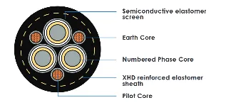 SC screen damage in abrasive environments: Without a composite copper braid, the SC elastomer screen is the sole screening layer — sheath integrity is more critical. XHD reinforced sheath provides additional protection. Inspect sheath condition regularly in high-abrasion environments.